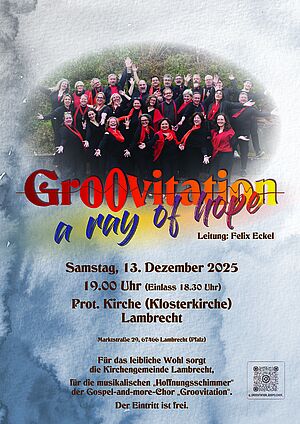 Ein Abend voller Musik, Hoffnung und Lebensfreude: Unter dem Titel „A Ray of Hope“ lädt der Gospelchor Groovitation zu seinem Jahreskonzert ein. Mit bekannten Gospels und modernen, berührenden Songs möchte der Chor zeigen, wie Musik Herzen öffnet und uns einen Hoffnungsschimmer in den Alltag bringt.